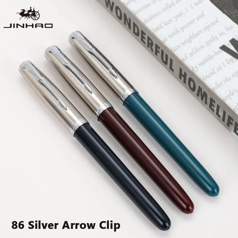 Jinhao 86 Fountain Pen Silver Arrow Clip Luxury Elegant Resin Classic Pens 0.5mm Nib Writing Office School Supplies Stationery