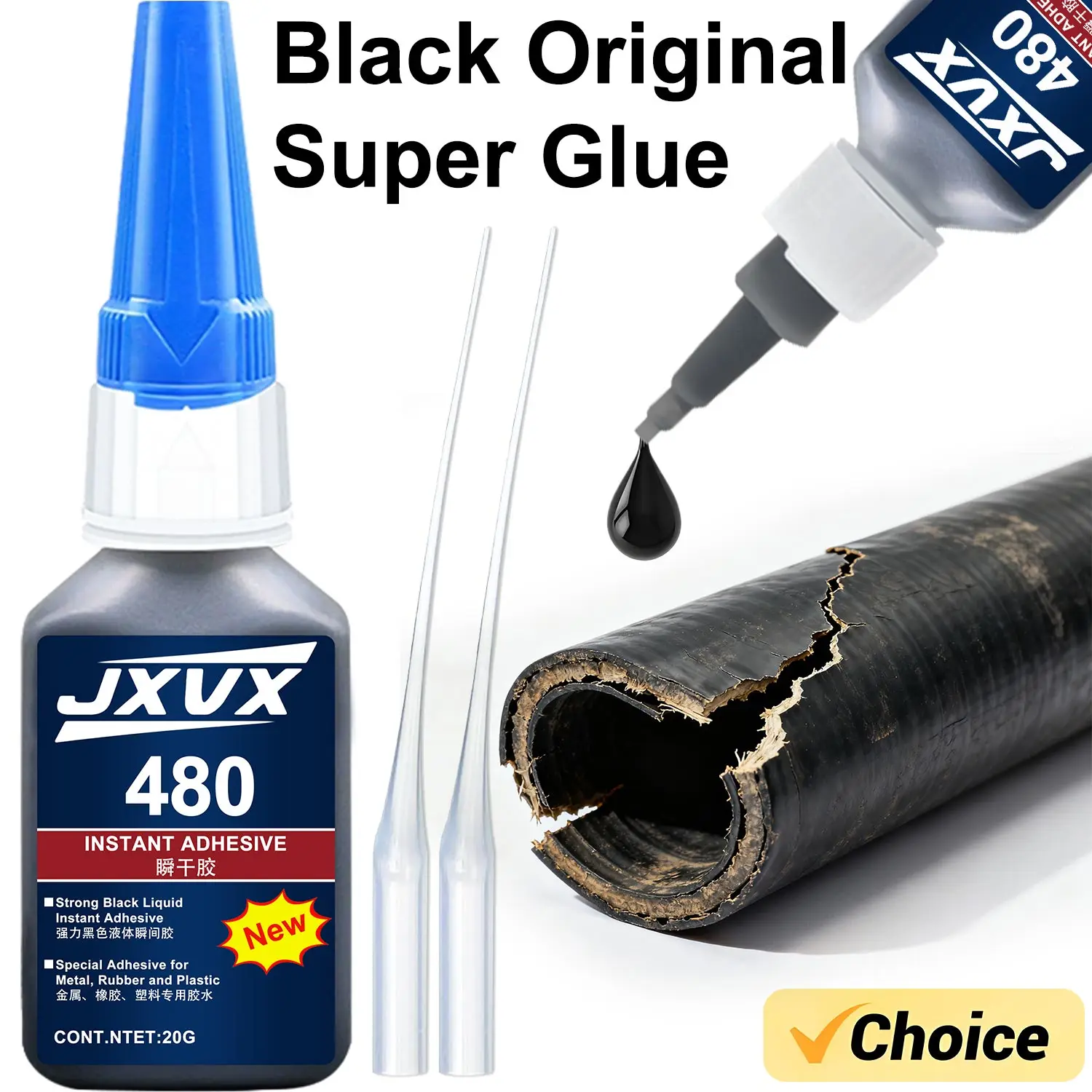 JXVX 20 g 480 Black Super glue for Black Liquid glue tyre repair Heavy Duty Rubber Wear Resistant Non Corrosive Sticker Instant Gluing Leather Original Sticker, Complete Dispenser