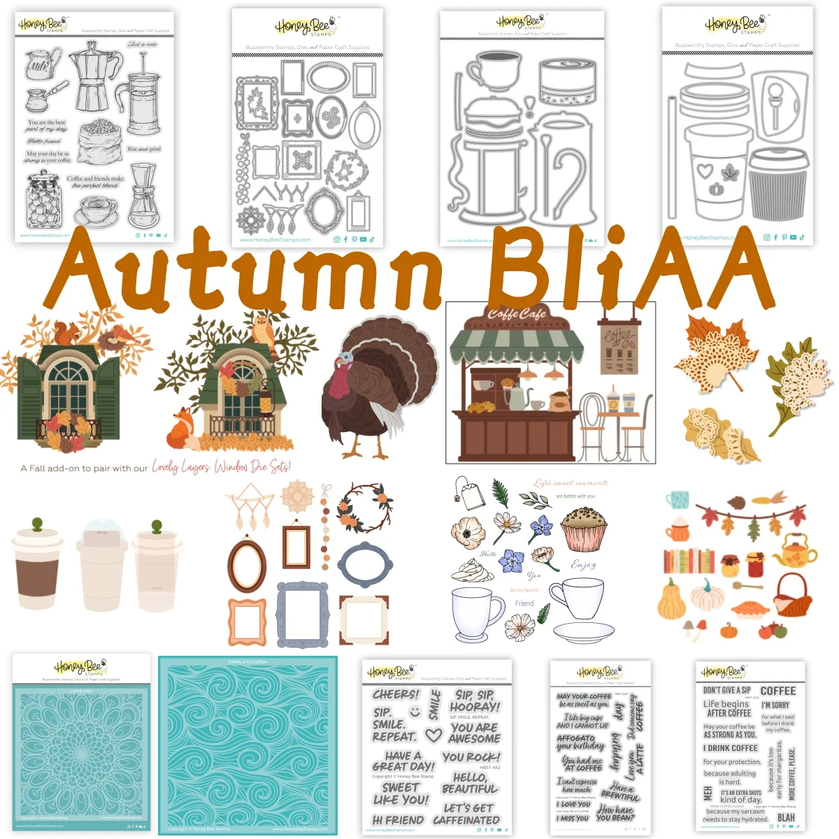 2025 New Fall Boho Leaves Coffee Bar Cup Letter Clear Stamps Metal Cutting Dies Stencil for DIY Scrapbook Card Craft Template