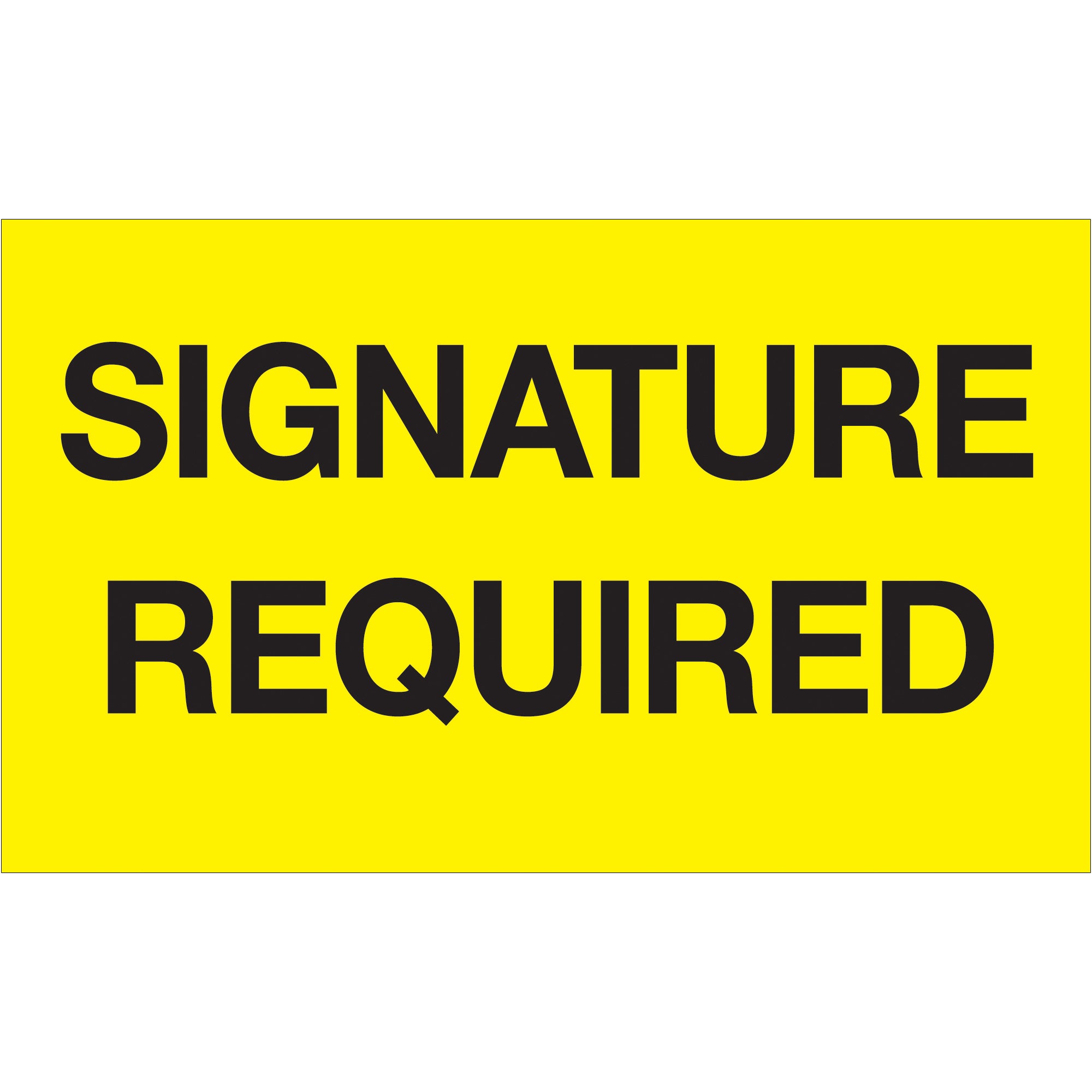3 x 5" - "Signature Required" (Fluorescent Yellow) Labels. Boldly display instructions and warnings with pressure sensitive labels. Table top dispensers available stock numbers SL9506, SL9512 and SL9518. Wall Mount dispensers available stock numbers...