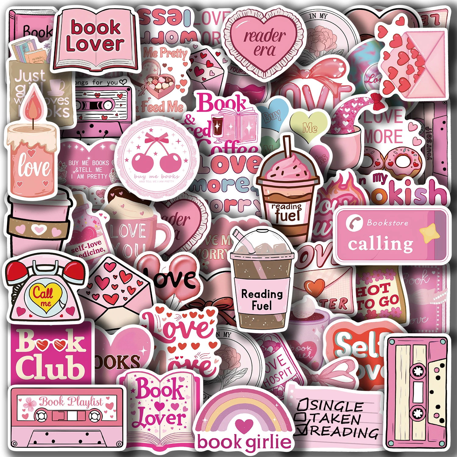 50pcs Pink Bookish Lover Inspirational Stickers Book Themed Decals for Notebooks Water Bottles Luggage Vinyl Stickers Pack