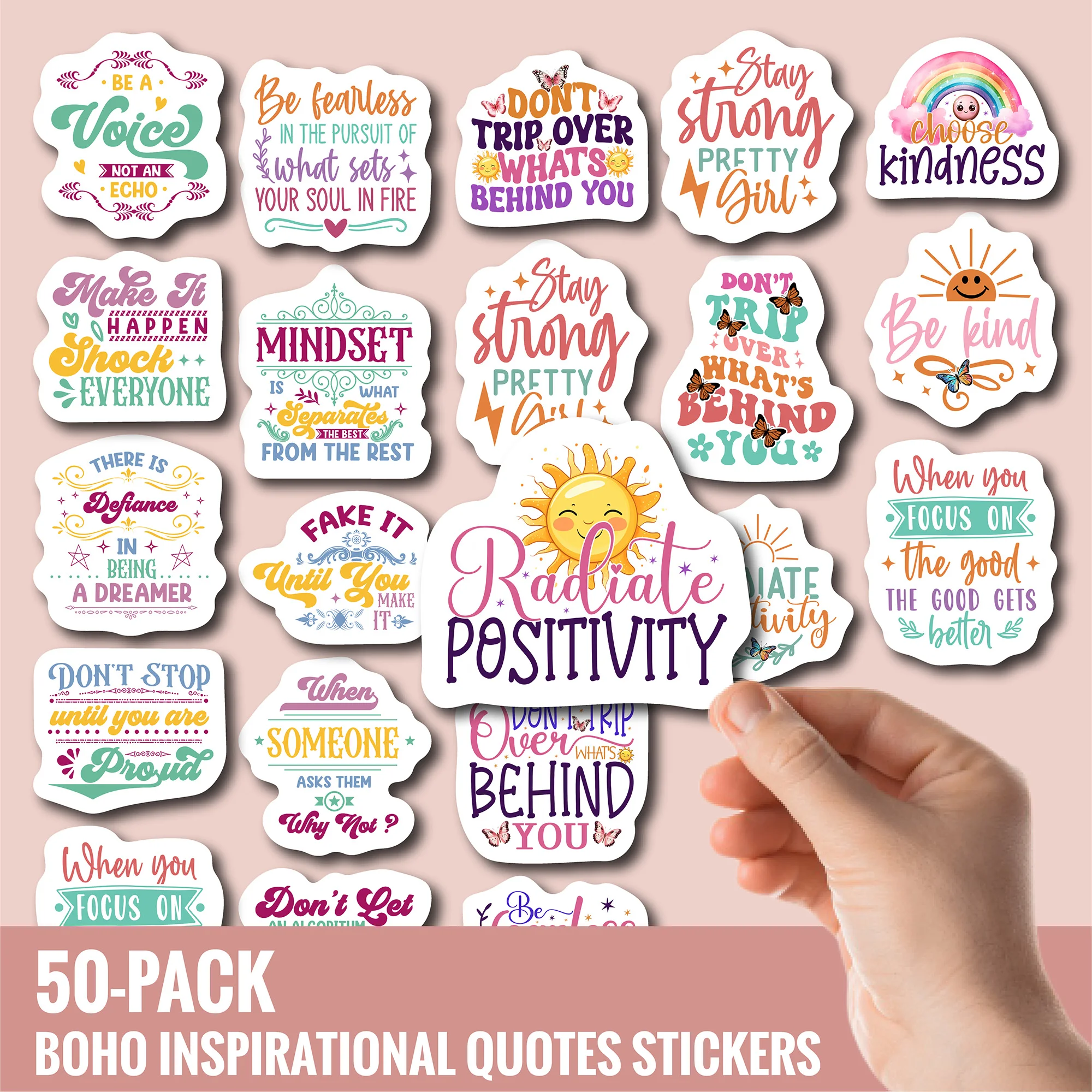 50 Pack Motivational Quote Stickers – Aesthetic Waterproof Vinyl, UV Printed, Durable & Tear-Resistant. Perfect for Journals