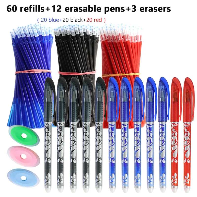 75pcs Erasable Pen Mix Set Classic Patterned Pen Friction Vanishing Magic Gel Pen Black/red/Blue and Eraser School Stationery  Read more