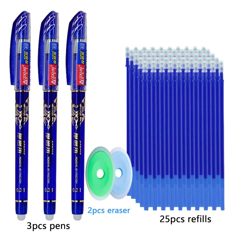 30pcs/set Blue/black/red Erasable Pen Set Dragon Pattern Design Gel Pen 0.5mm Washable Handle School Stationery Office Supplies  Read more