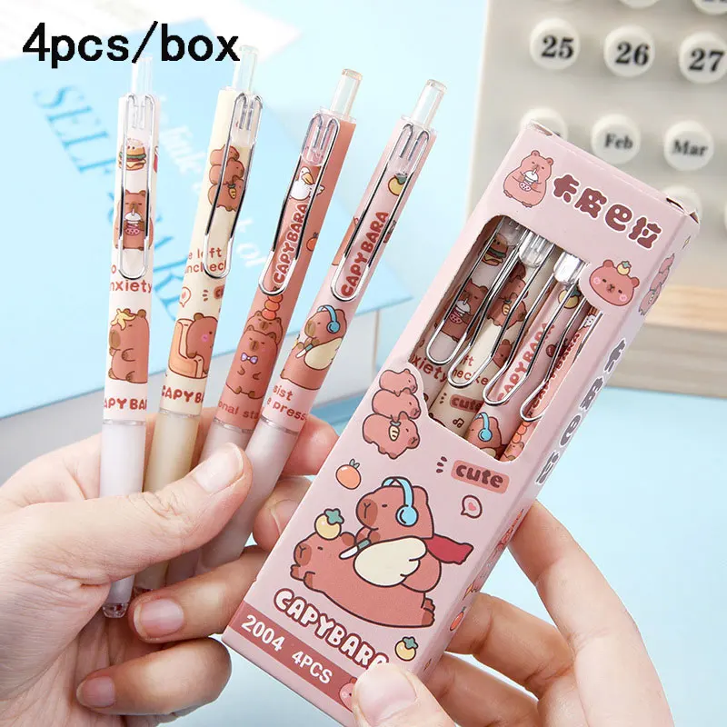 4Pcs/box Cute Capybara Gel Pens Kawaii Pen Set Quickly-Drying Erasable Pens Office School Supplies Kawaii Aesthetic Stationery