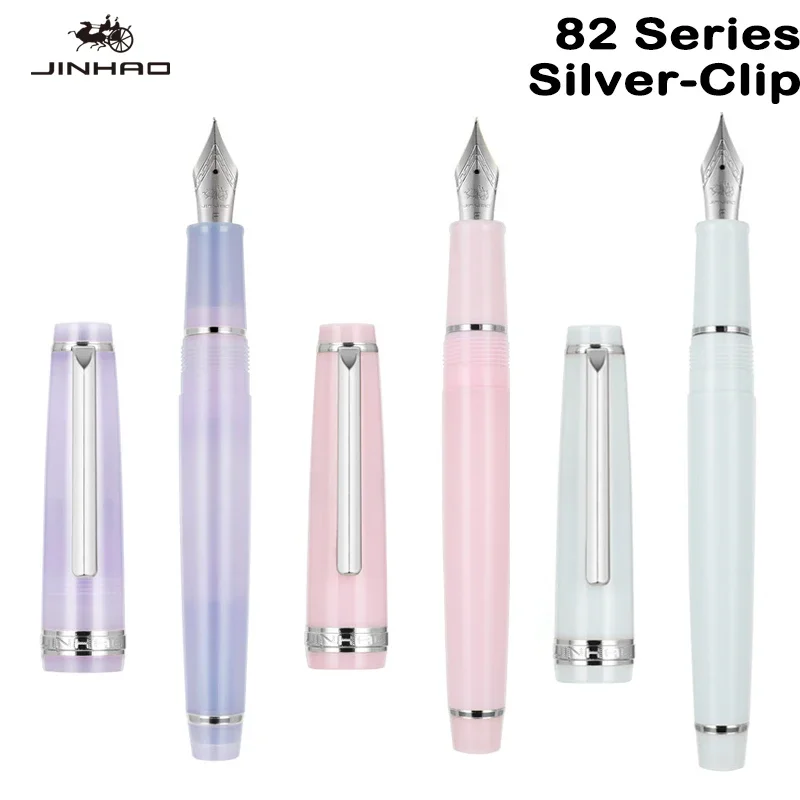 JINHAO 82 Fountain Pen Spin Silver Clip EF F M Nib Business Office School Supplies Ink Pens Korean Stationery Pens for Writing