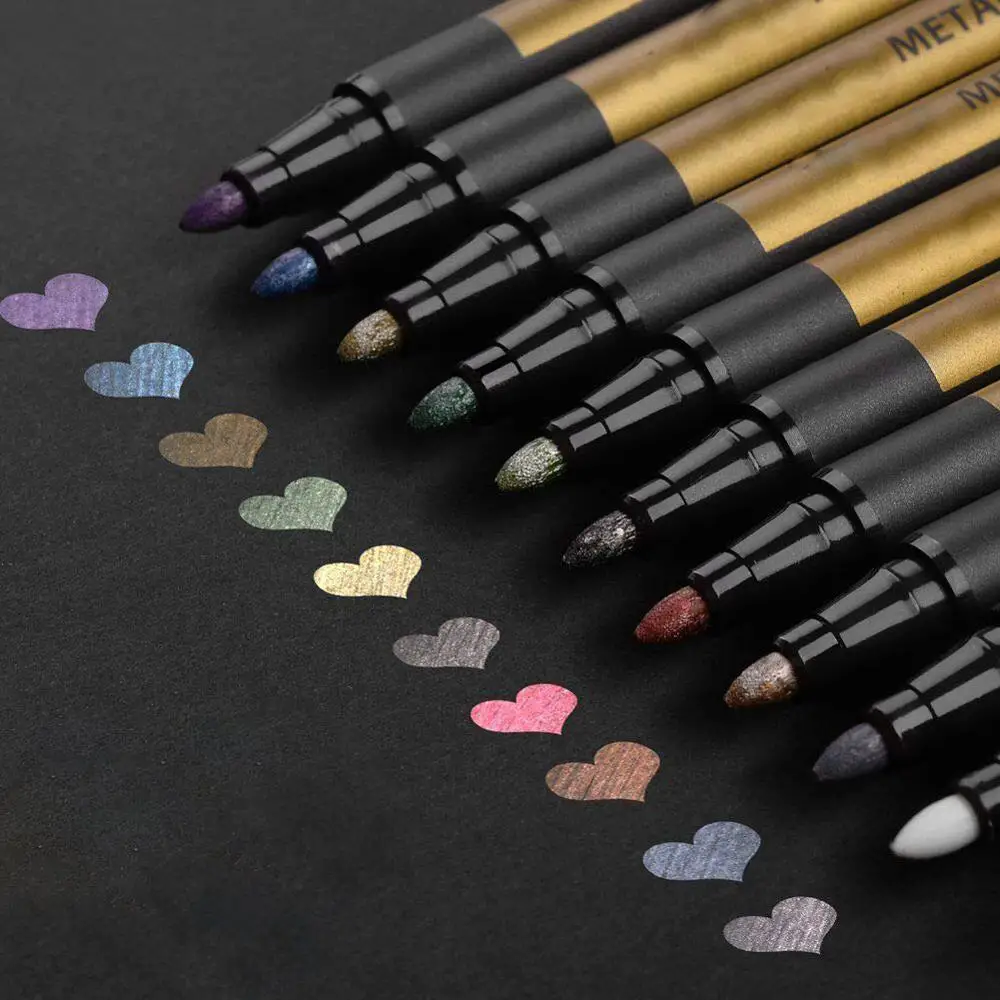 Metallic Marker Pens Glitter Metallic Calligraphy Brush Pens For Black Paper Scrapbooking Rock Painting Christmas Card Making