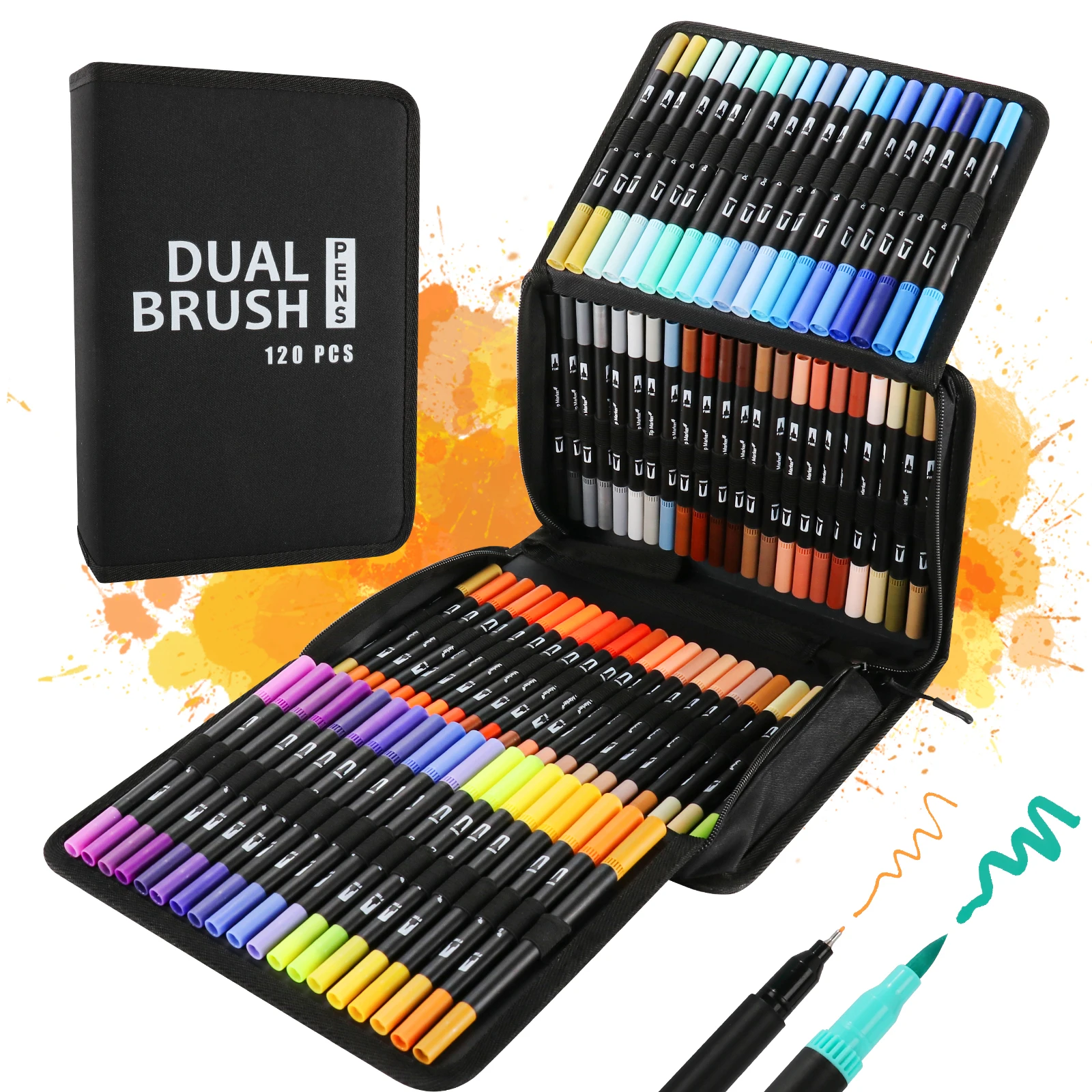 12/48/72/132 Colors Watercolor Art Markers Brush Pen Dual Tip Fineliner Drawing for Calligraphy Painting Stationery Art Supplies