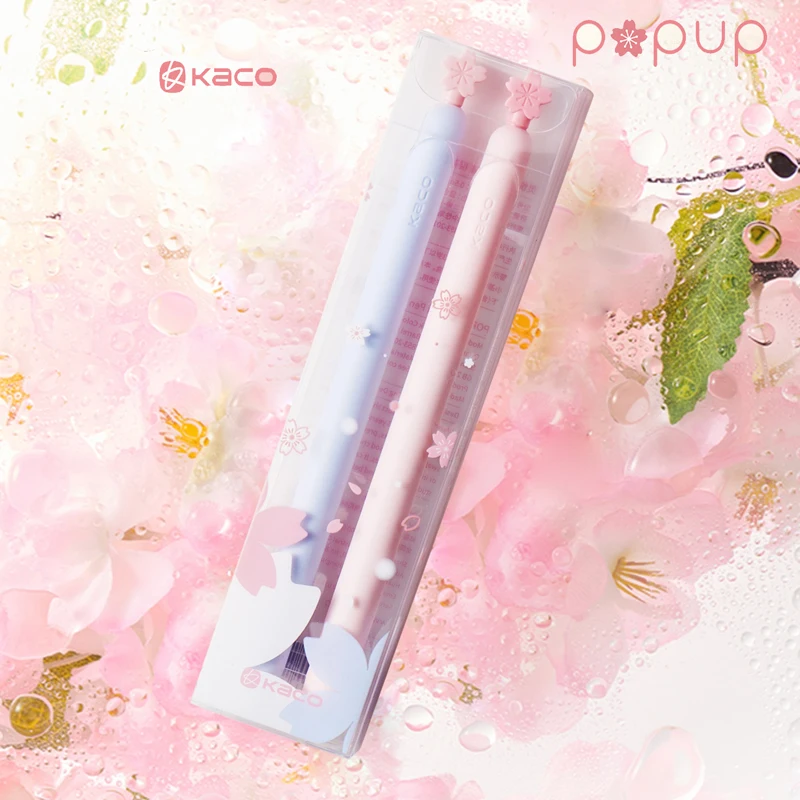 KACO Joypop-Sakura Gel Pen, 2pcs Kawaii Fine Point, Quick-Drying Ink 0.5mm Black Core Signing Ball Stylo Creative Stationery Gifts