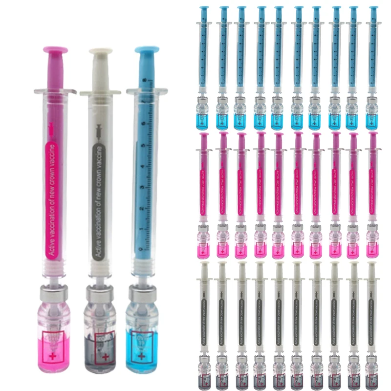 30Pcs Syringe Gel Pen Simulation Eliminates Virus Injection Syringe Shape Black Ink Signature Pen Vaccine Pen  Read more