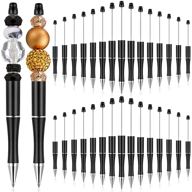20Pcs Black Beadable Pen Plastic Bead Ballpoint Pen Black Ink Beaded DIY Pens Cute Cool Pens for DIY Making Gift Kids Students