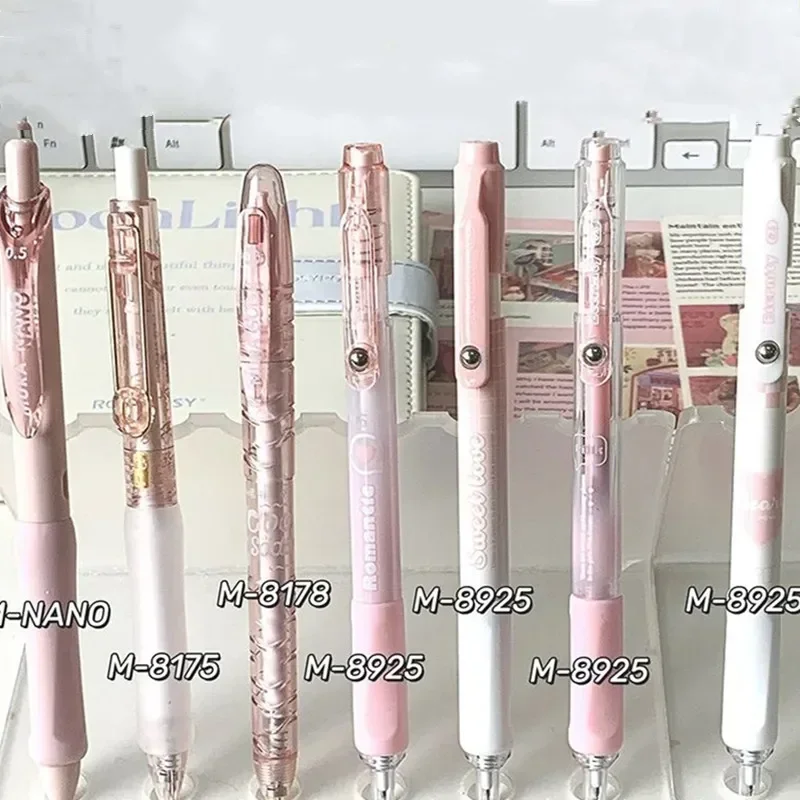 7pcs/set Cute Pink Color Student Gel Pen for Girl Sweet Chic American Style Stationery Gel Pen 0.5mm Black Ink Pen for Writing