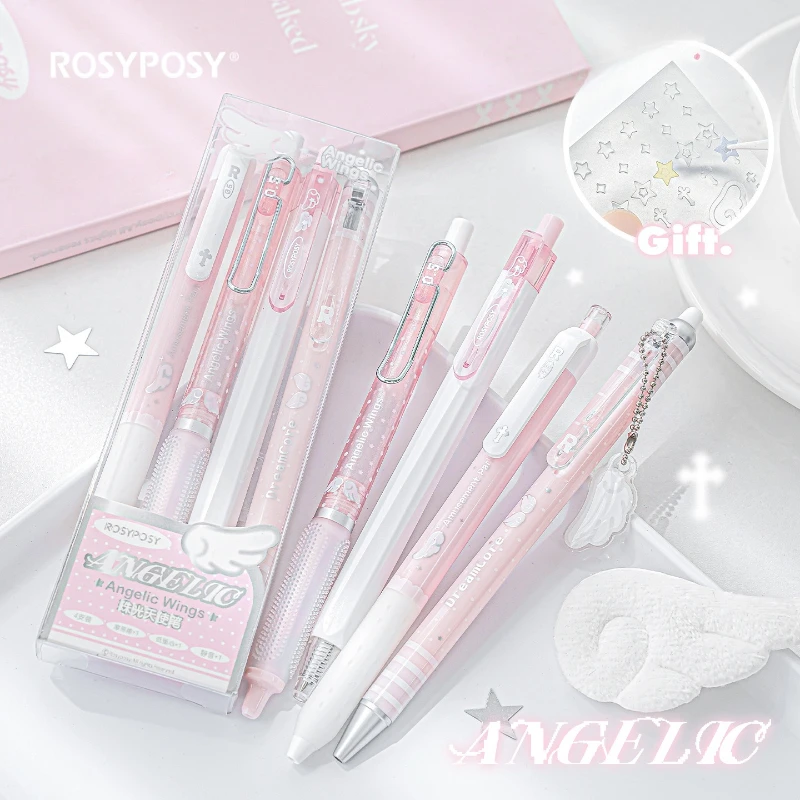 4pcs/set Pearl Angel Gel Pen Set Cute Exam Pens with Wing Design Kawaii Cartoon 0.5mm Black Ink for Kids Back To School Student  Read more