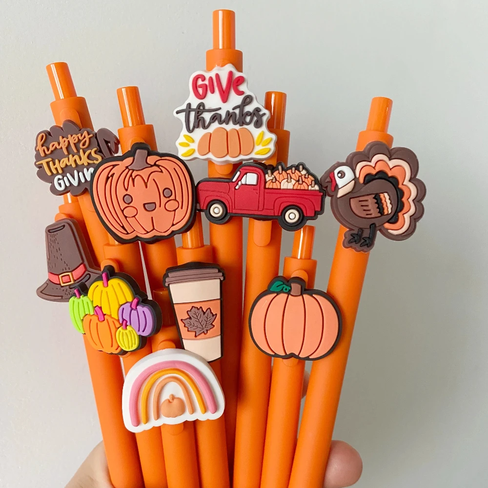 10Pcs Fall Gel Pens Thanksgiving Writing Pens with Pumpkin Design, 0.5mm Black Ink for Party Favors and Gifts