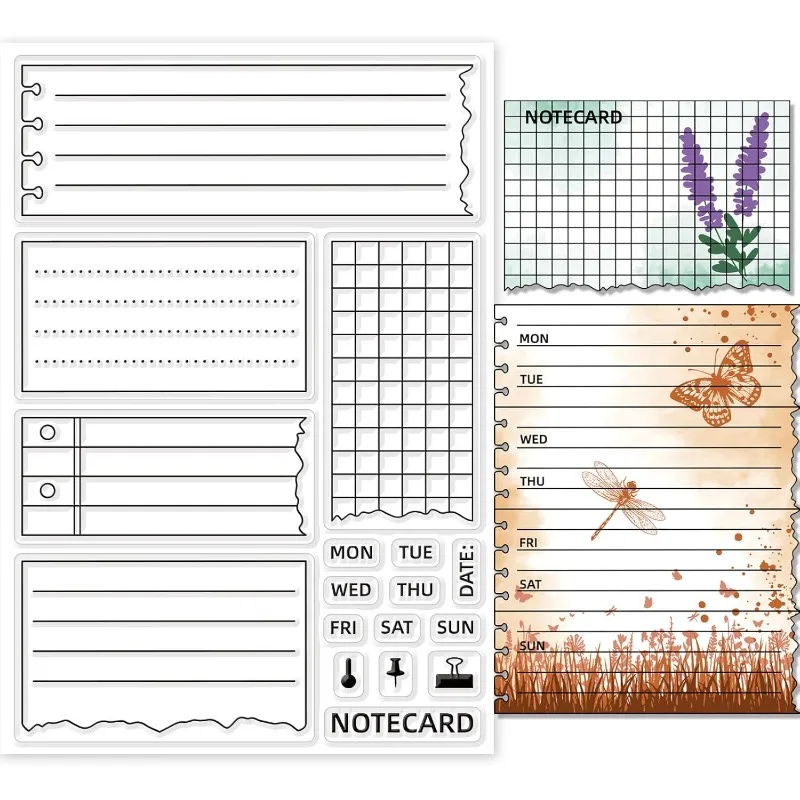 1Sheet Clear Stamp Notebook Stamp Silicone Stamp Set 5Pcs Silicone Notepad templates and 12 pcs Markers for Notebook DIY