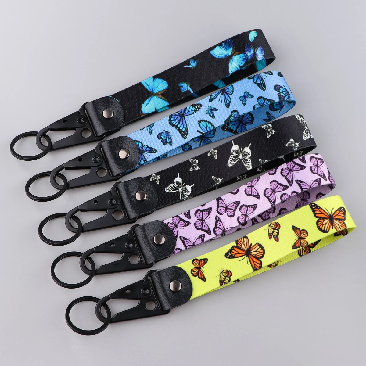 Butterfly Car Keychain Lanyard For Keys USB Gym ID Card Badge Holder Mobile Phone Straps Short Wrist Straps Key Ring Accessories  Read more