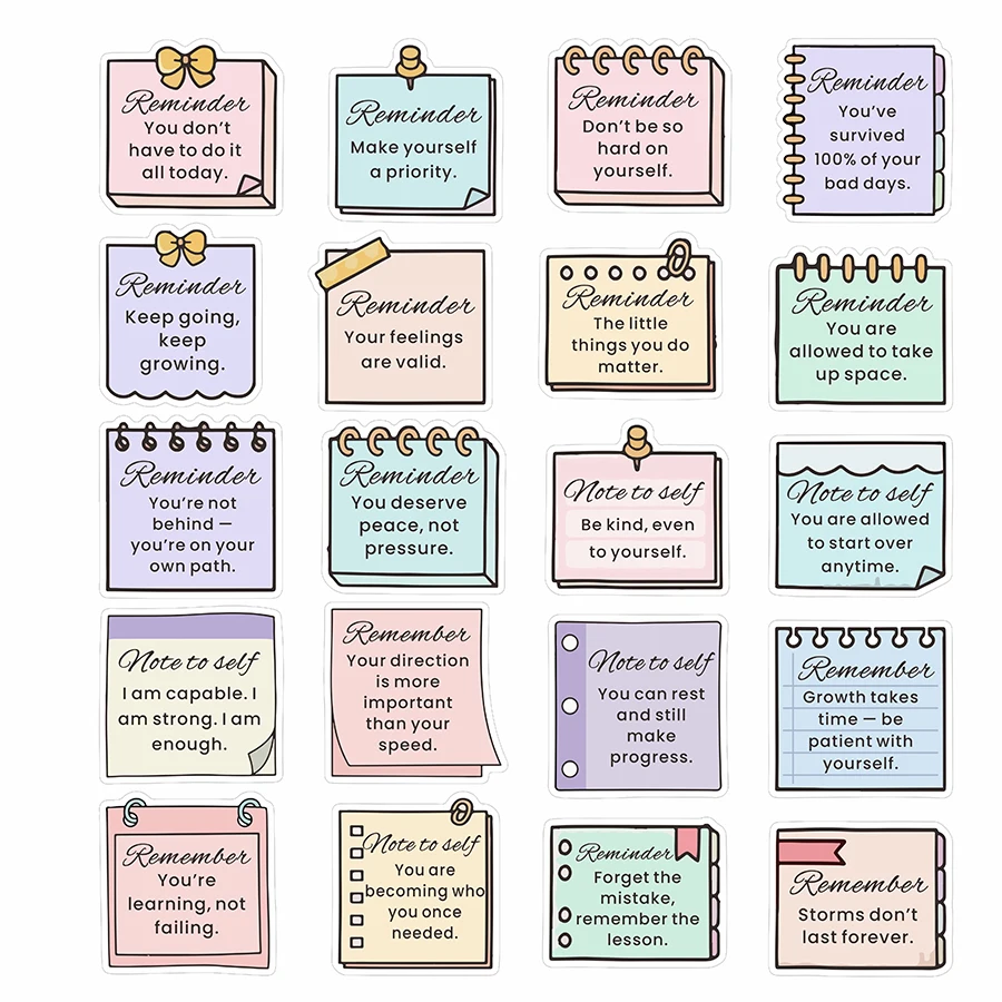 Motivational Reminder Stickers – 100 Pcs Pastel Quote Labels for Scrapbooking, Journals, Planners, Cards, and DIY Crafts