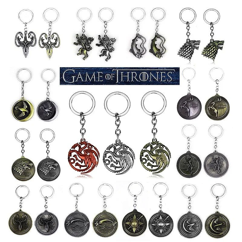 Thrones Key Chain Stark Wolf Head Dragon Badge KeyChain Pendant Keyring Jewelry Llaveros of Movie Gifts for Fan Collectible Gift