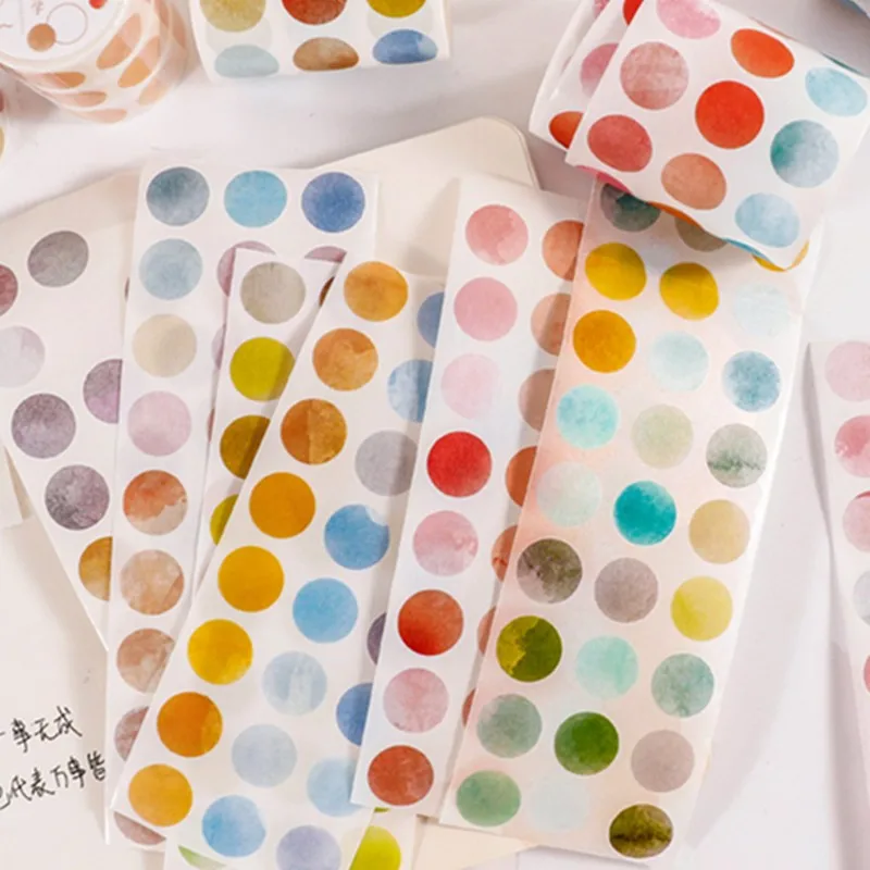 1 roll Watercolor Polka Dot Sticker Junk Journaling Accessories Scrapbooking DIY Color Label Washi Sticker Stationery Suit