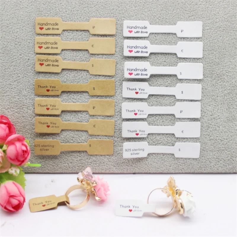 100PCS multi style ring folded labels white/kraft handmade with love ring price labels jewelry tag sticker labels 6*1.2cm  Read more