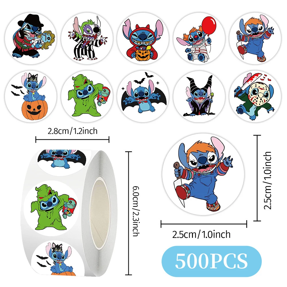 500pcs/roll Funny Halloween Disney Stitch Stickers Sealing Labels Sticker Laptop Phone Luggage Cartoon Graffiti Decals Kids Toy  Read more