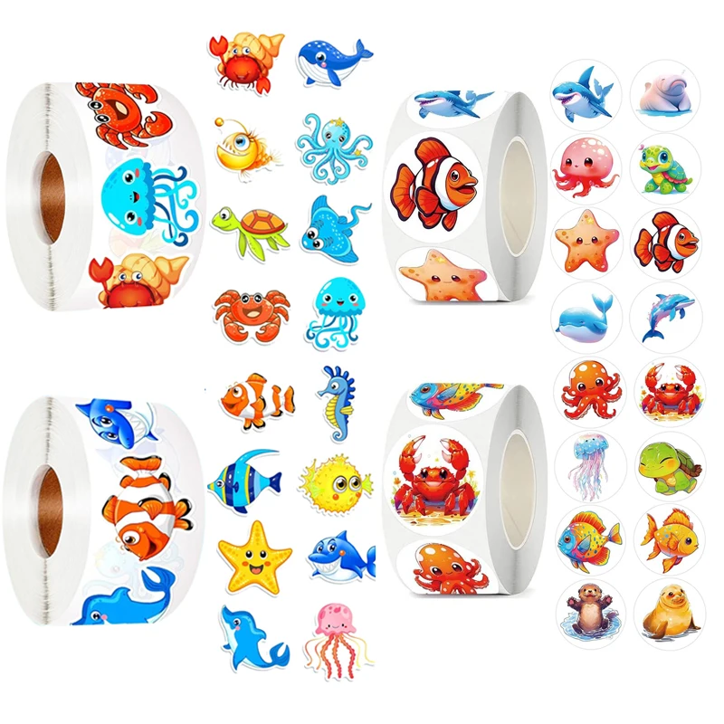500/1000 Pcs Roll Sticker For Kids Cute Cartoon Fish Deals Sea Ocean Animal Stickers Creature Labels For Teacher Reward School