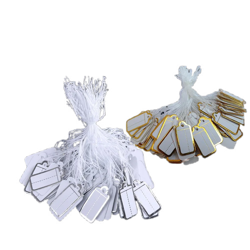 100-500pcs Jewelry String Cord Price Tags Custom Printing Blank Label Gold Silver Display Accessories Jewellery Store  Read more
