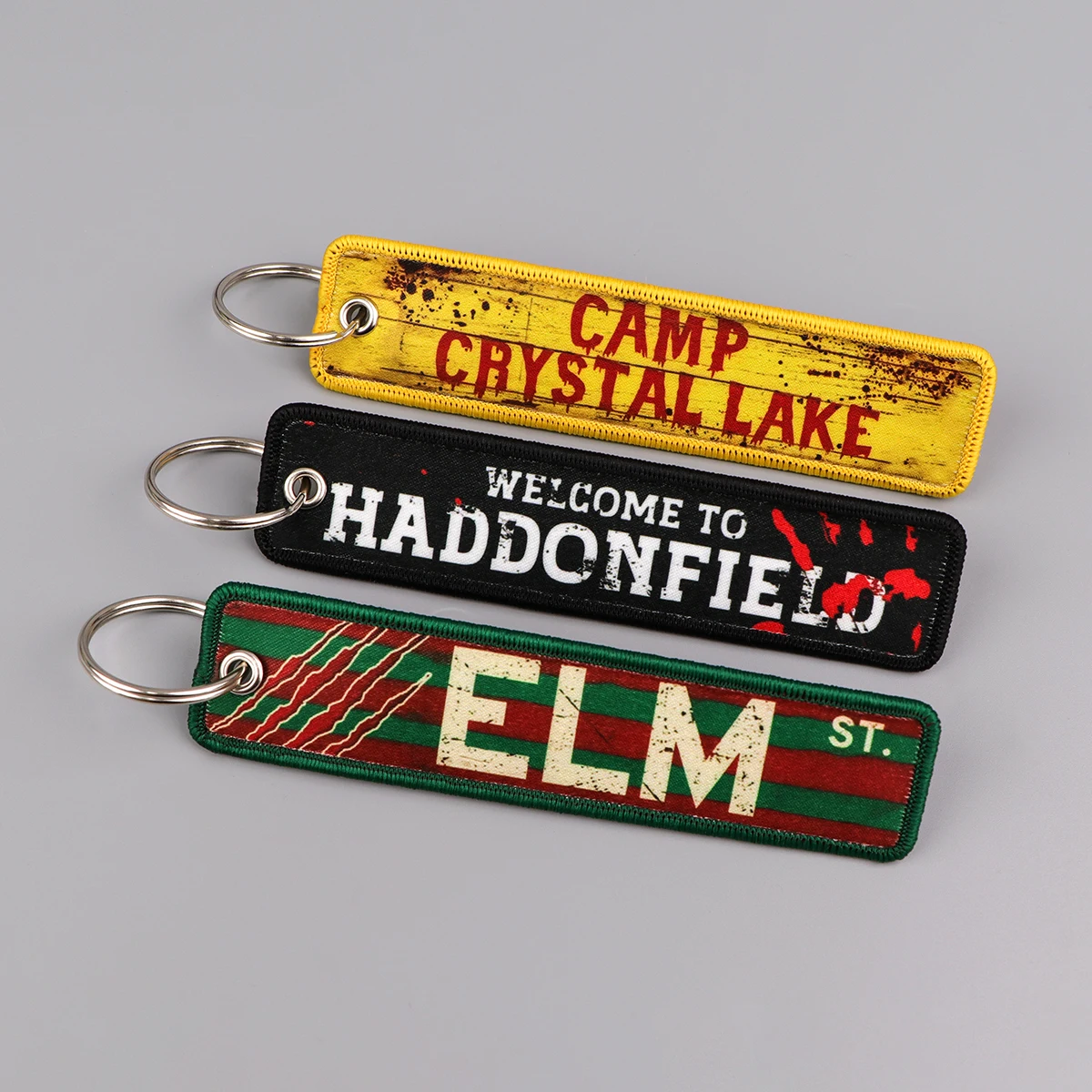 Movie Retro Key Tag Embroidery Key Fobs Keychains for Car Motorcycles Keys Holder Keyring Halloween Jewelry Accessories Gifts
