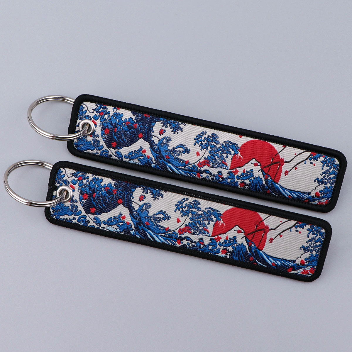 Japanese Waves Embroidery Key Fobs Art Key Tags Keychains for Motorcycles Cars Key Rings Accessories Chaveiro Key Holder Jewelry