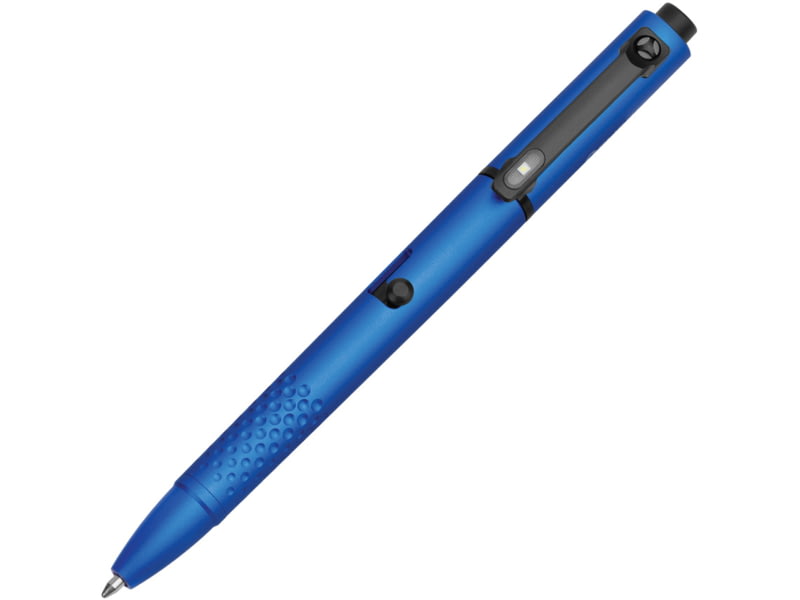 Olight O-Pen Glow Blue. 13" overall. Pocket clip. Multiple functions: Pen tip light Green laser pointer Pen clip light and pen. Light and pen can be separated. Bolt action. Secure locking mechanism. Textured grip. Includes charging base. Type-C...  Read more