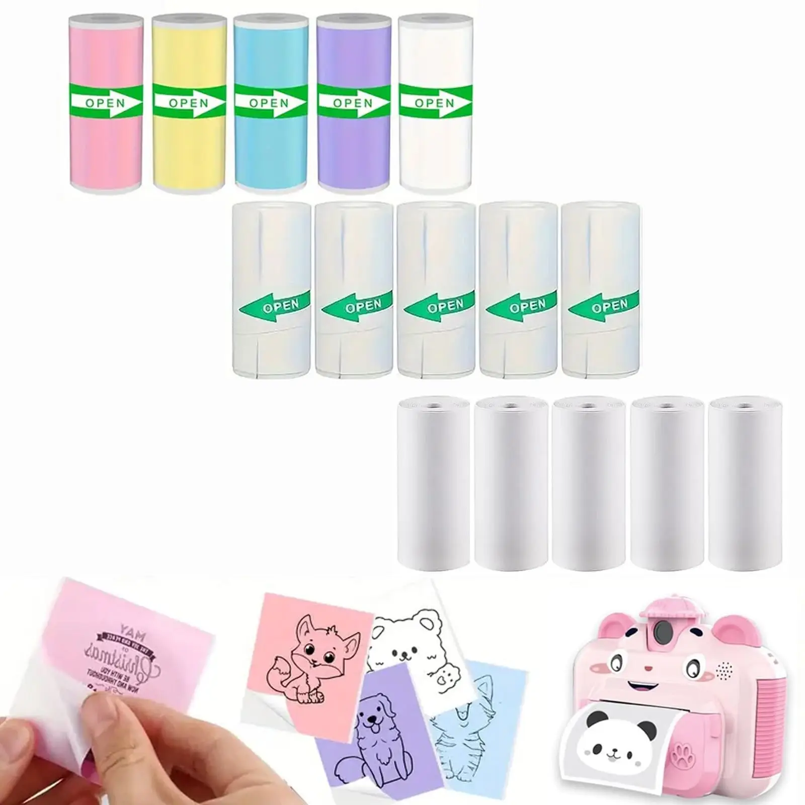 15 Rolls 57mm Thermal Paper Self-Adhesive Sticker (5 White/5 Color)+5 Plain, for Camera/Portable Printers, Photo Journal Office