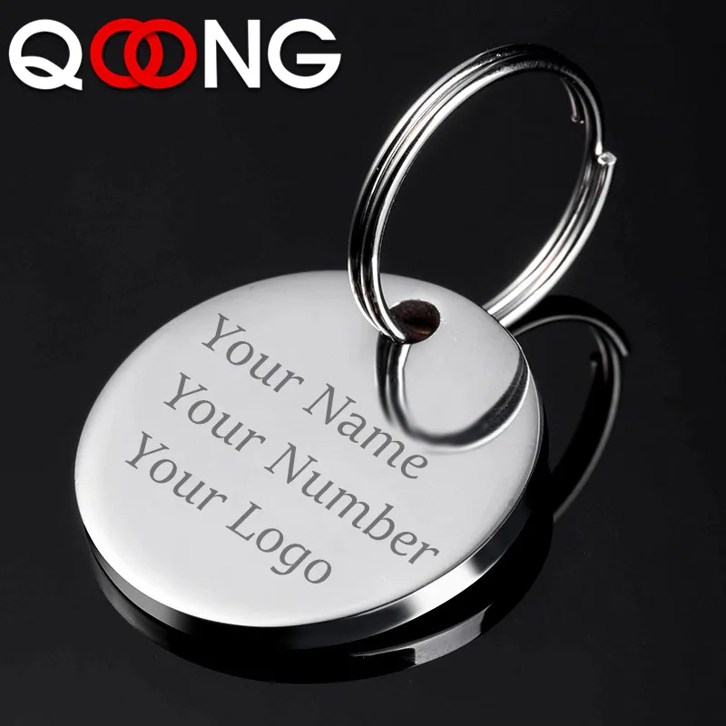 QOONG Custom Engraved Keychain For Car Logo Name Stainless Steel Personalized Gift Customized Anti-lost Keyring Key Chain Ring