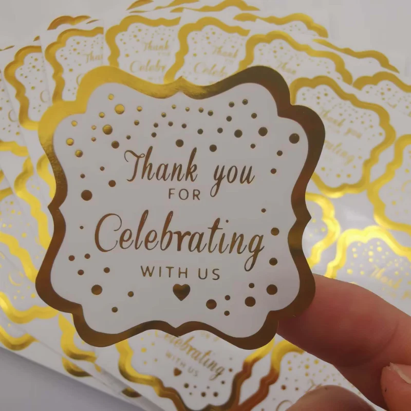 60pcs Gold Foil Thank You For Celebrating With Us Stickers 2 inch Fancy Frame Rectangular Labels Stickers for Wedding Party  Read more