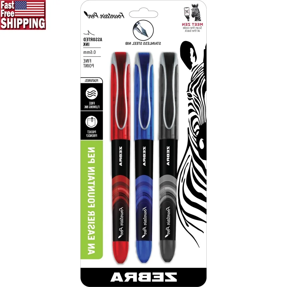Fine Point Fountain Pen Set 0.6mm Assorted Ink Colors 3 Count Non-Toxic Quick Dry Elegant Smooth Writing Creative Projects