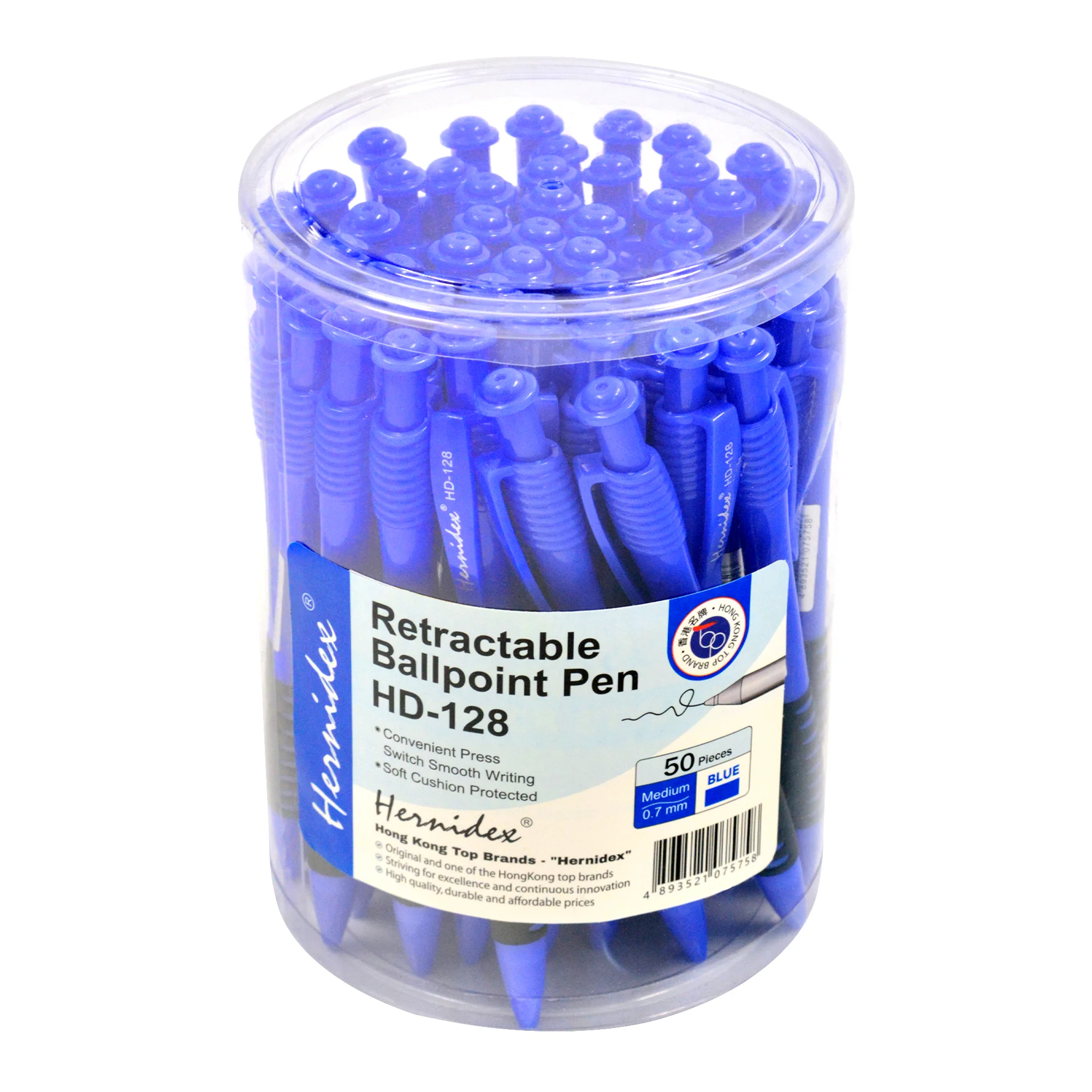 HERNIDEX 50pcs Ballpoint Pens, 0.7mm Medium Point, Smooth Writing, Bulk Office School Supplies, Retractable, No-Skip Ink 50 Pack