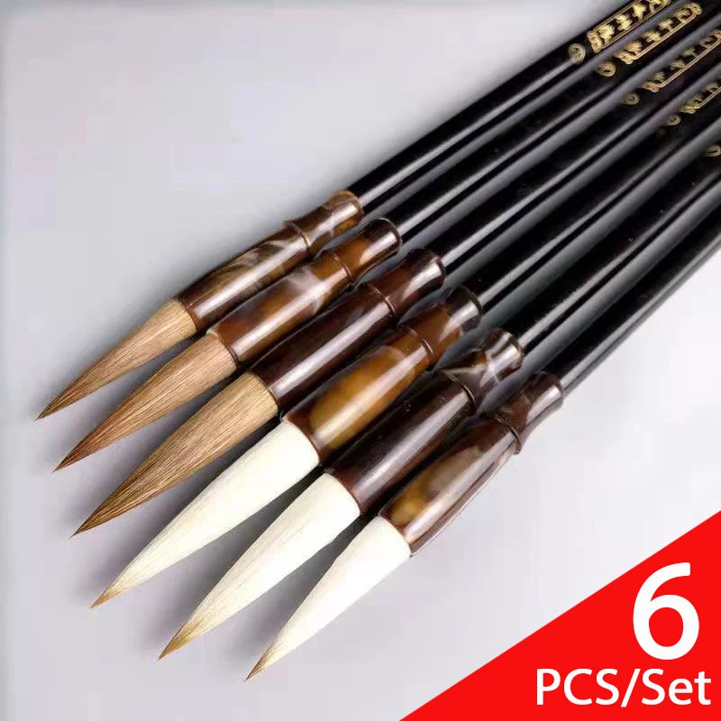 6pcs Wooden Calligraphy Brush Pen Set Different Models Chinese Painting Brush Pen Wool Weasel Hair Regular Script Writing Brush  Read more