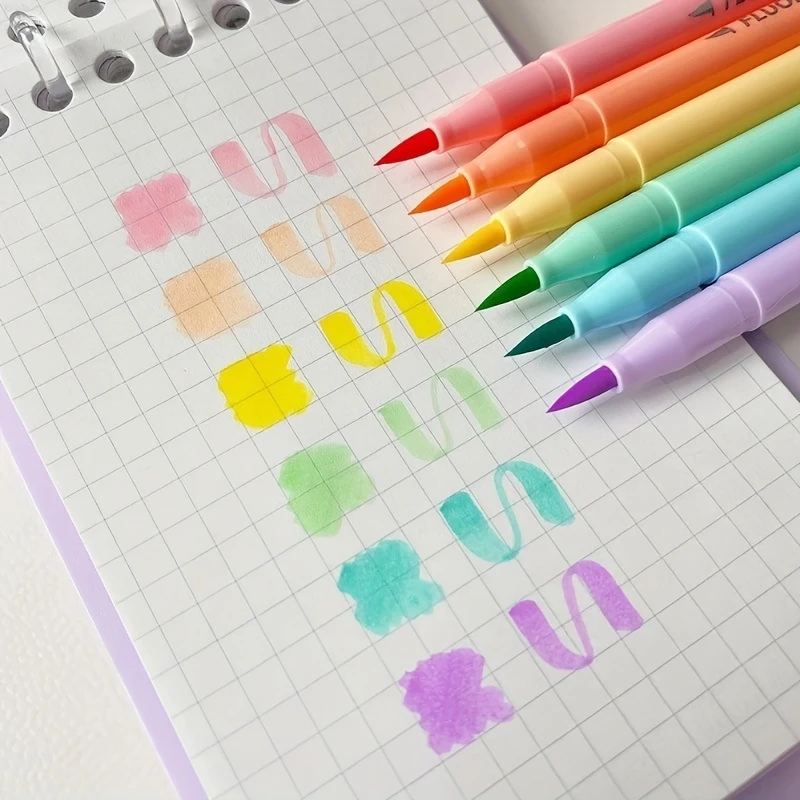 6pcs Soft Brush Fluorescence Pen Set Pastel Markers Coloring Highlighter Calligraphy Pen For Office Art Student Supplies