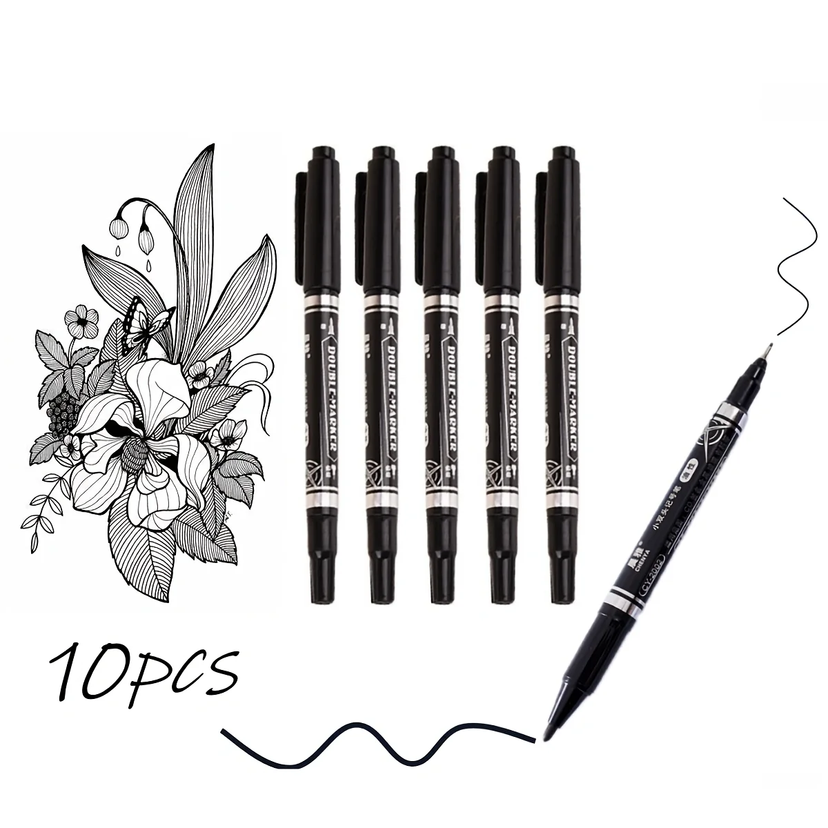 10pcs/set Twin Tip Colored Permanent Art Markers Pens Fine Point Waterproof Oily Black Ink Sketchbook Painting School Supplies