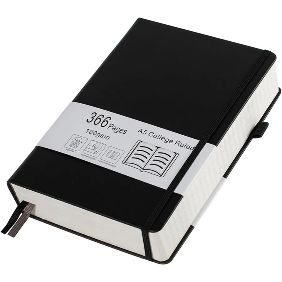 Thick College Ruled Notebook with 366 Numbered Pages A5 Journals for Writing with 100GSM Lined Paper Hardcover Leather Notebook