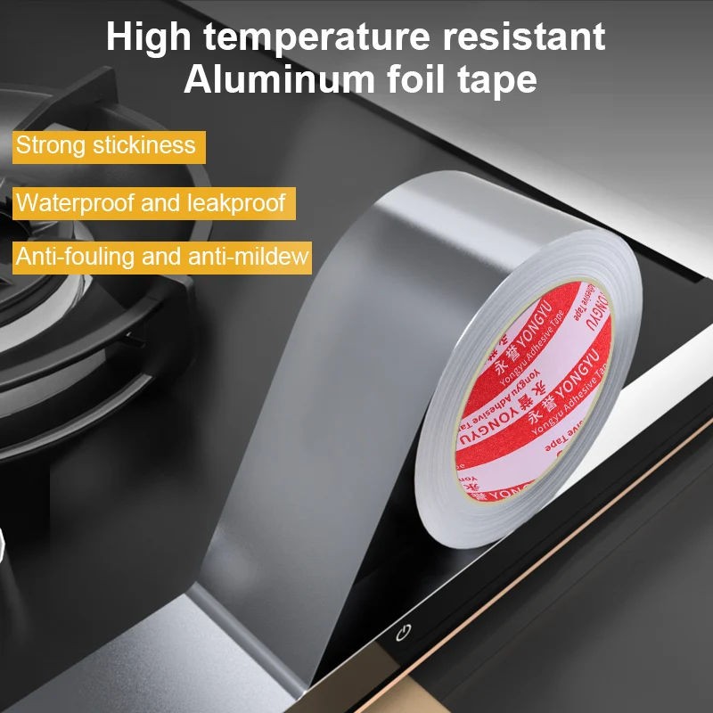 1roll High temperature resistant aluminum foil tape, waterproof and oil-proof, flame-retardant and sun-proof, hand-tearable