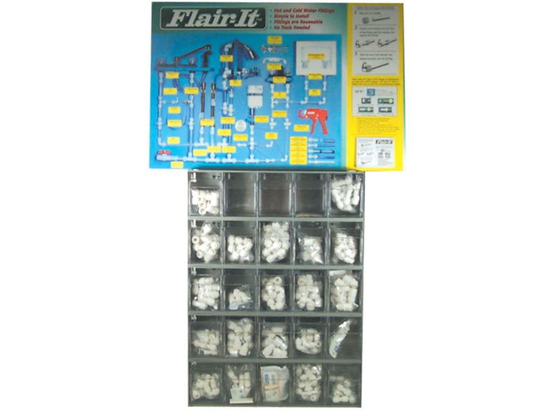 Flair-It Flair It Sales Starter Kit RV 3/8 & 1/2in.W/Bins 28070. These starter kits for PEX come complete with: Tilt Bins Bin Tags Header Board and Peel Off Instructions. P indicates diameter of tubing. Features of Flair-It 28070 Flair It Sales...  Read more