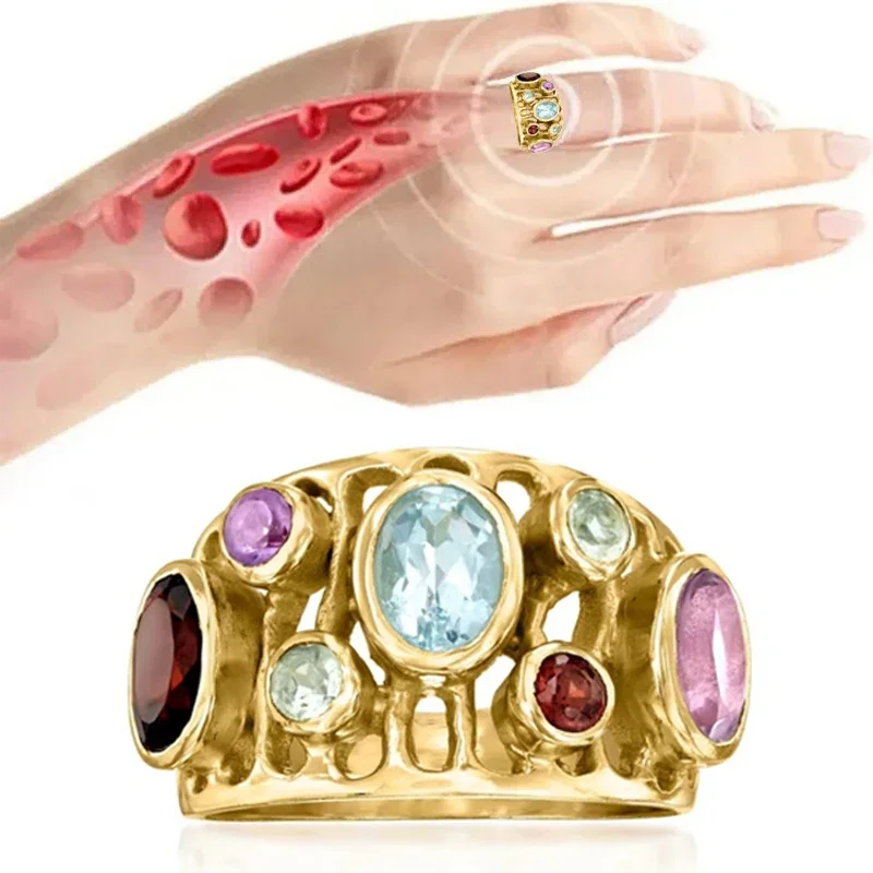 Colored Quartz Crystal Ionix Therapy Lymphatic Drainage Ring Women Fashion Gold Color Weight Loss Slimming Jewelry Accessories
