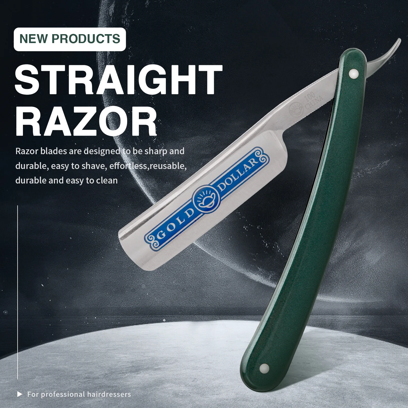 Men's Manual Straight Shaver Gold Dollars Classic Sharp Razor Barber Facial Epilator Stainless Steel Folding Shaver