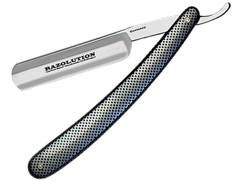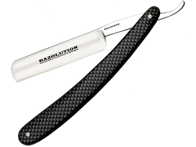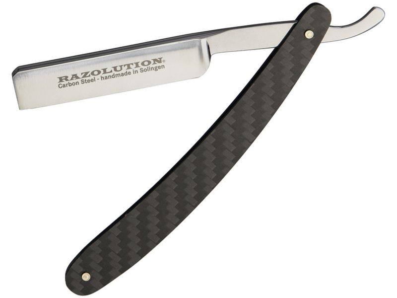 Razolution Straight Razor Folding Knife4inCarbon SteelStandard Edge Straight Head BladeSatin Black Carbon Fiber Handle 88161