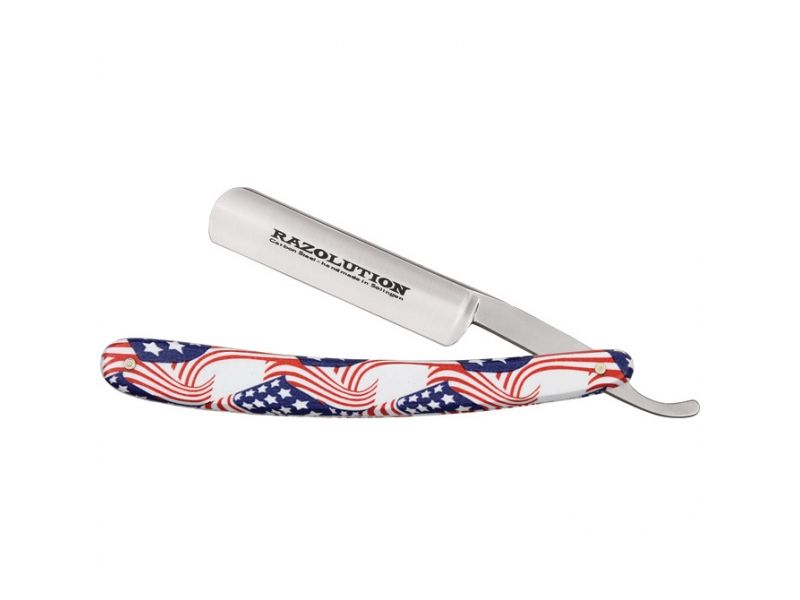 Simba Tec Razolution Straight Folding Knife3inRazor BladeRed White And Blue Stars And Stripes Composition Handle SBT88113