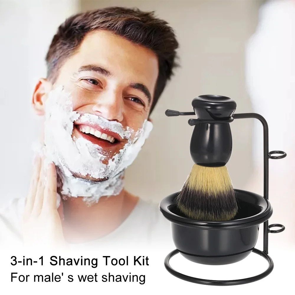 Shaving Brush Stand & Bowl Set Metal Shaving Brush Holder Soap Bowl Mug Plastic for Men Beard Removal Tools