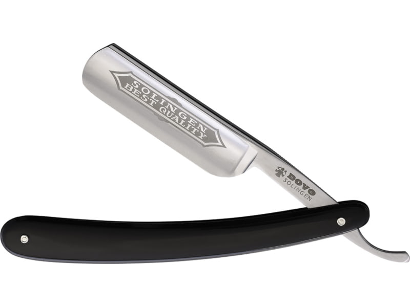 Dovo Best Quality Straight Razor. 5" (16.51cm) closed. Carbon steel blade. Black plastic handle. Extended tang. Blade etching. 6/8" blade width. Full hollow grind. Boxed. Specifications for Dovo Best Quality Straight Razor: Manufacturer: Dovo Color:...  Read more