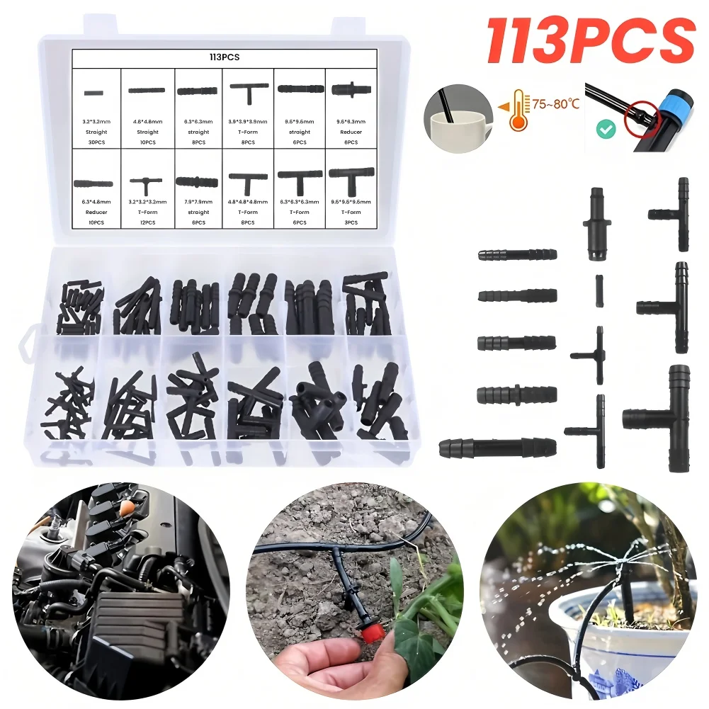 113pcs Car Hose Connector Assortment Reducer Set Plastic Straight T Piece Connectors For Cooling Systems Fuel Systems