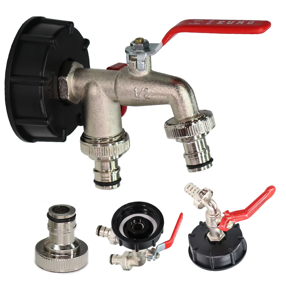 1PC 1/2''x3/4'' 16MM Metal Water Tap with S60 Coarse Thread IBC Tank Cover 1-2 Ways Coupling Adapter Ball Valve Garden Faucet