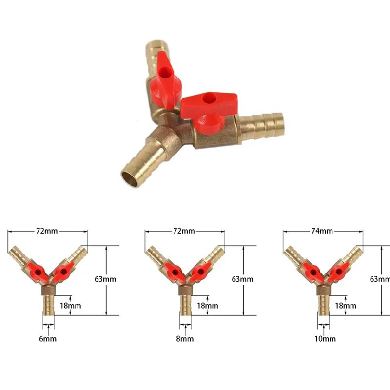 6 8 10 Mm Hose Barb Y-type All-copper Pagoda 3-way Brass Cutoff Ball Valve Fittings Fittings Adapter for Fuel, Water, Oil, Air